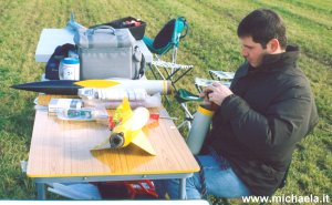 Stefano impegnato nella piegatura del paracadute che permetterā al modello di atterrare senza riportare danni.